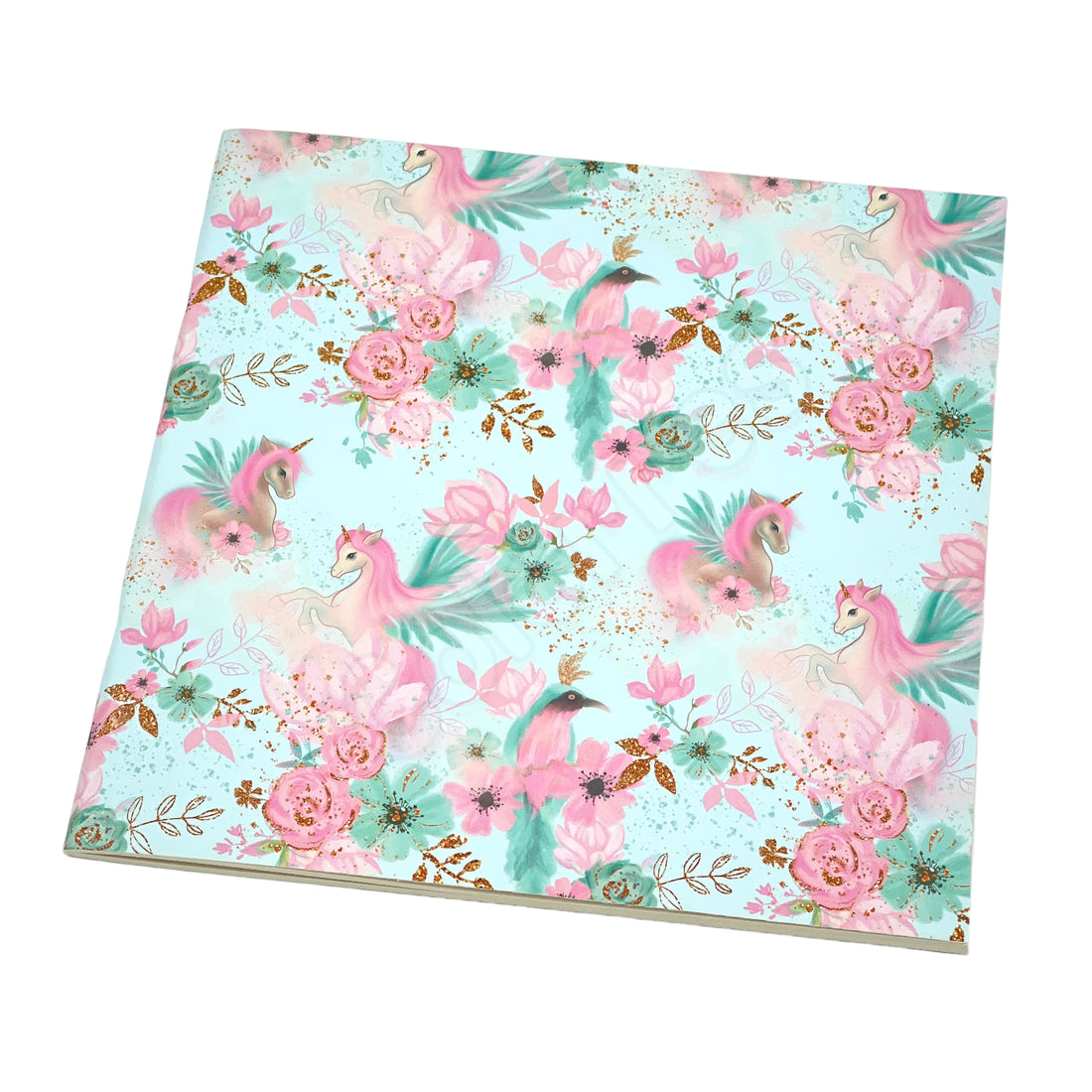 Unicorn with Flowers Kare Defter 21x21 cm Çizgili Terzi Dikişli