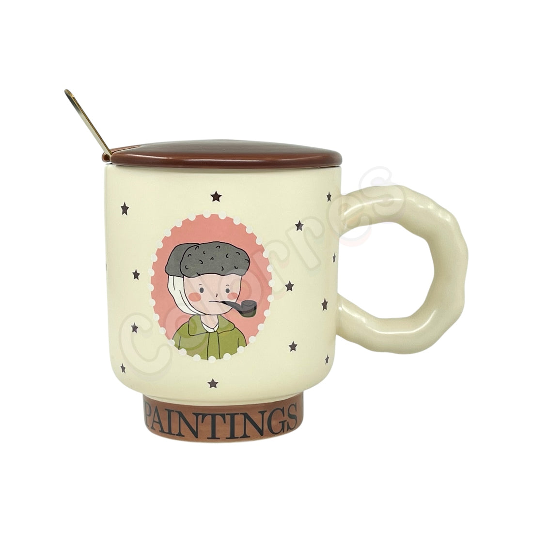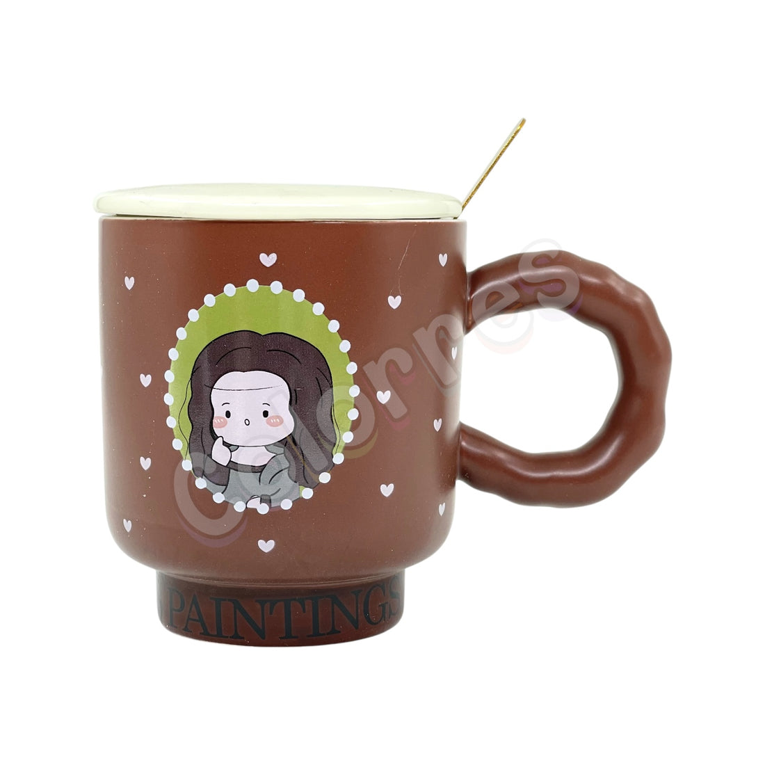 İnci Küpeli Kız 3D Kapaklı Kaşıklı Seramik Kupa