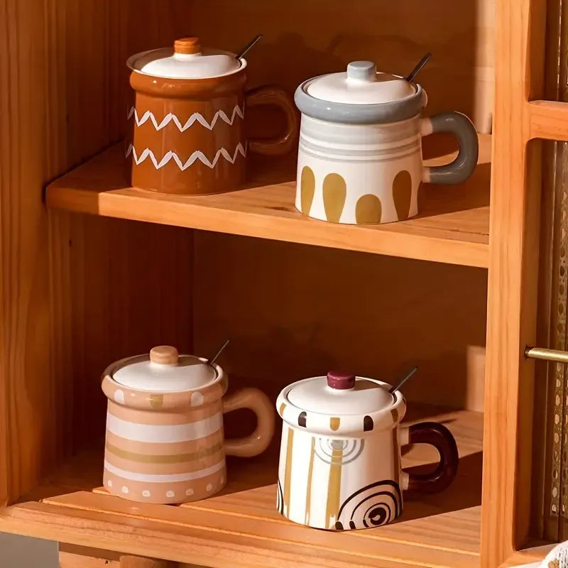 Etnik Desenli Nostalji Kapaklı 3D Seramik Kupa