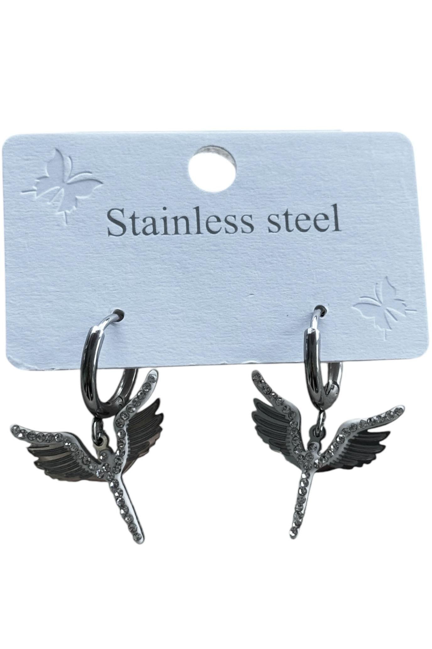 Gümüş Renk Kuş Figürlü Çelik Küpe