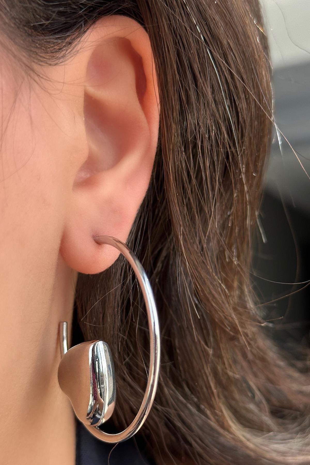 Kalp Figürlü Çelik Halka Küpe
