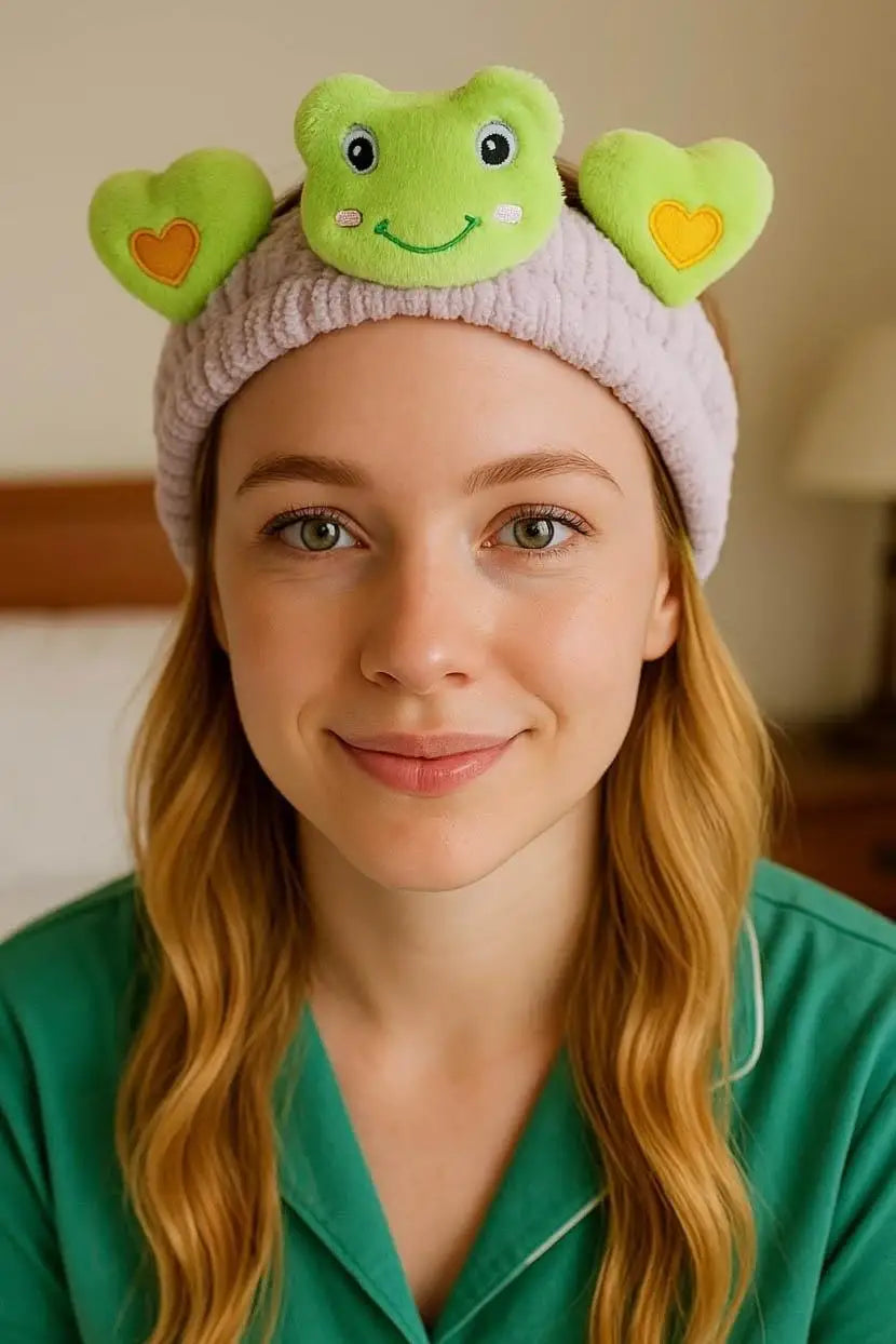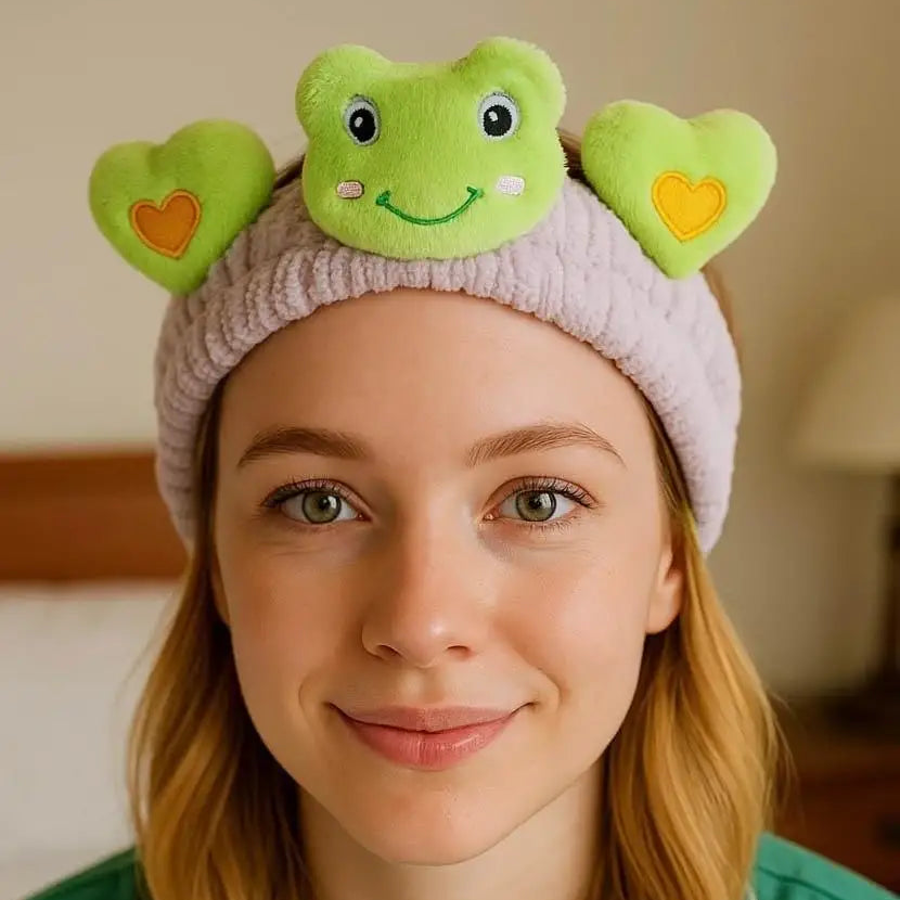 Pembe Ve Yeşil Kurbağa Figürlü Peluş Saç Bandı