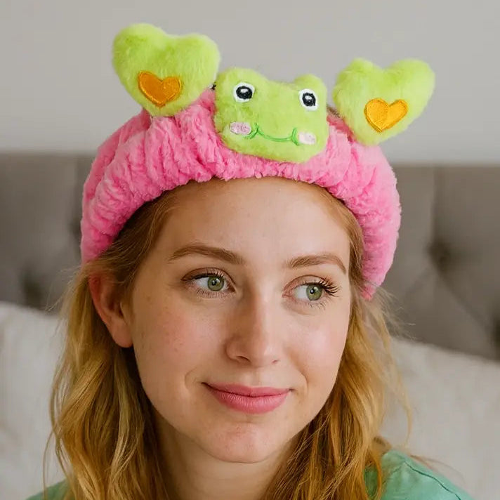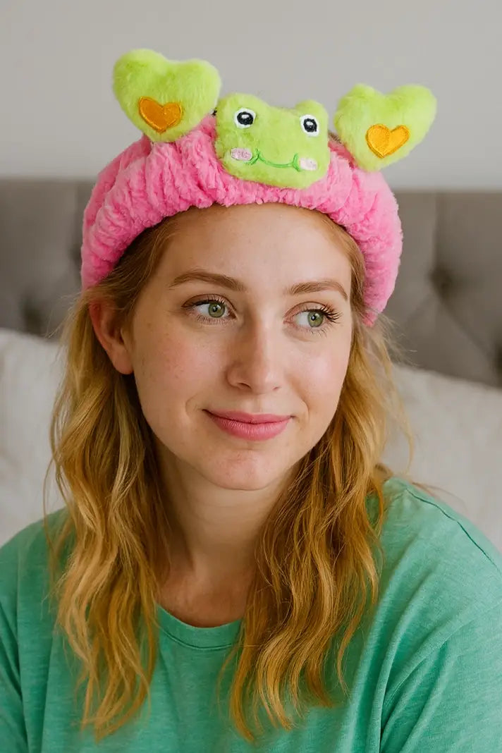 Pembe Ve Yeşil Kurbağa Figürlü Peluş Saç Bandı