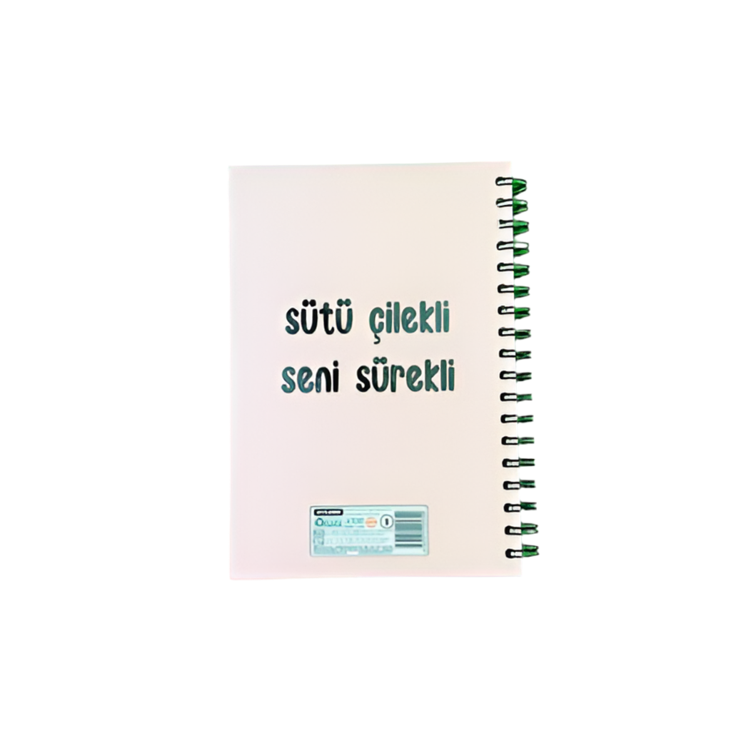 Sütü Çilekli Seni Sürekli Tasarımlı Spiralli Defter